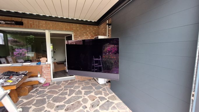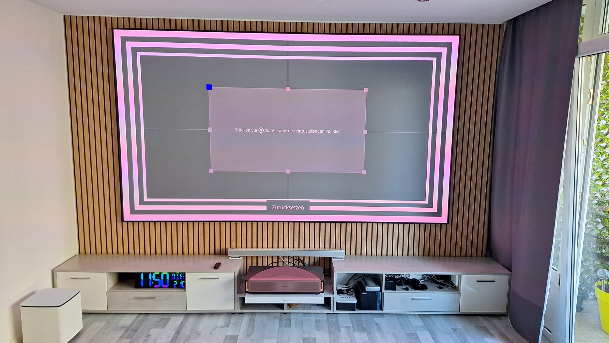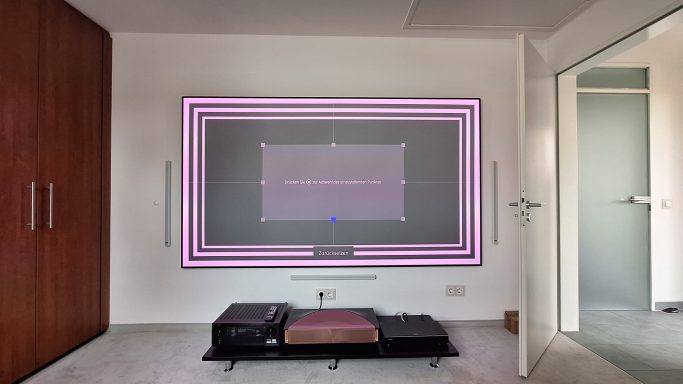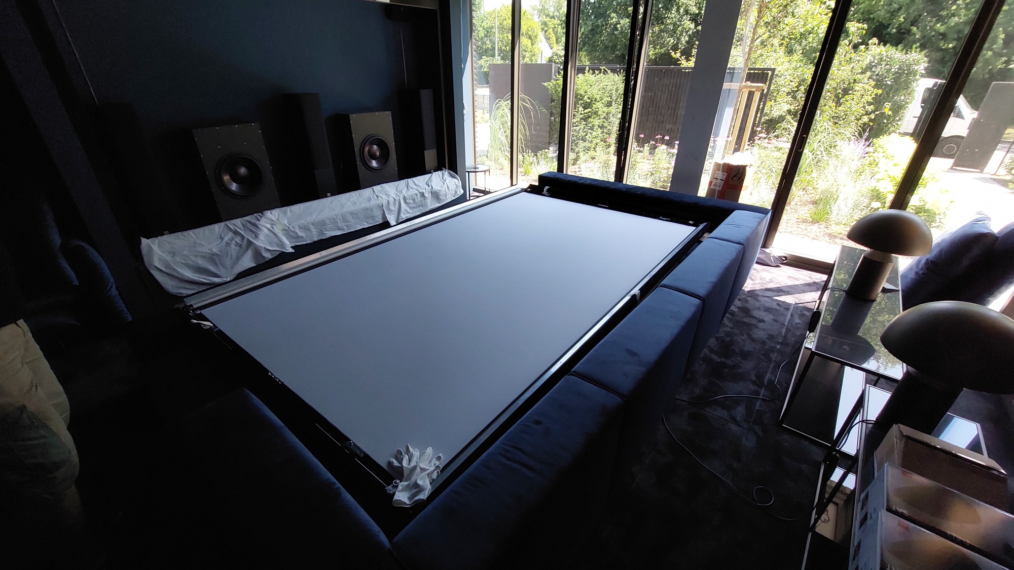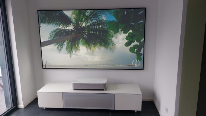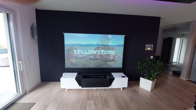 Laser-TV in elektrischer Schublade auf 120" CLR-Leinwand