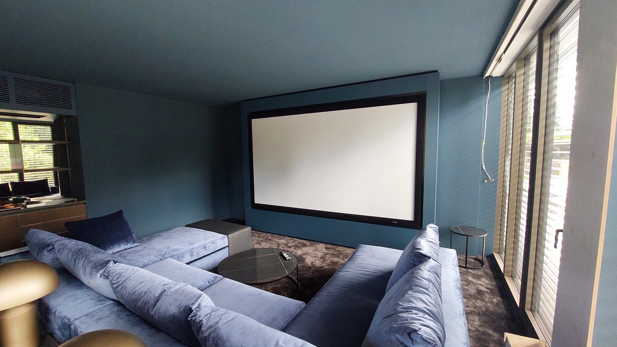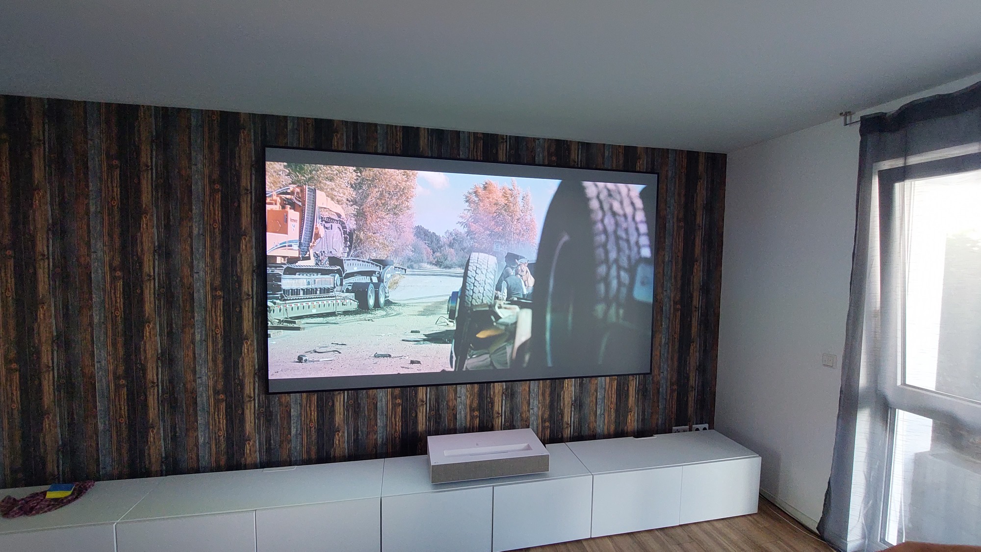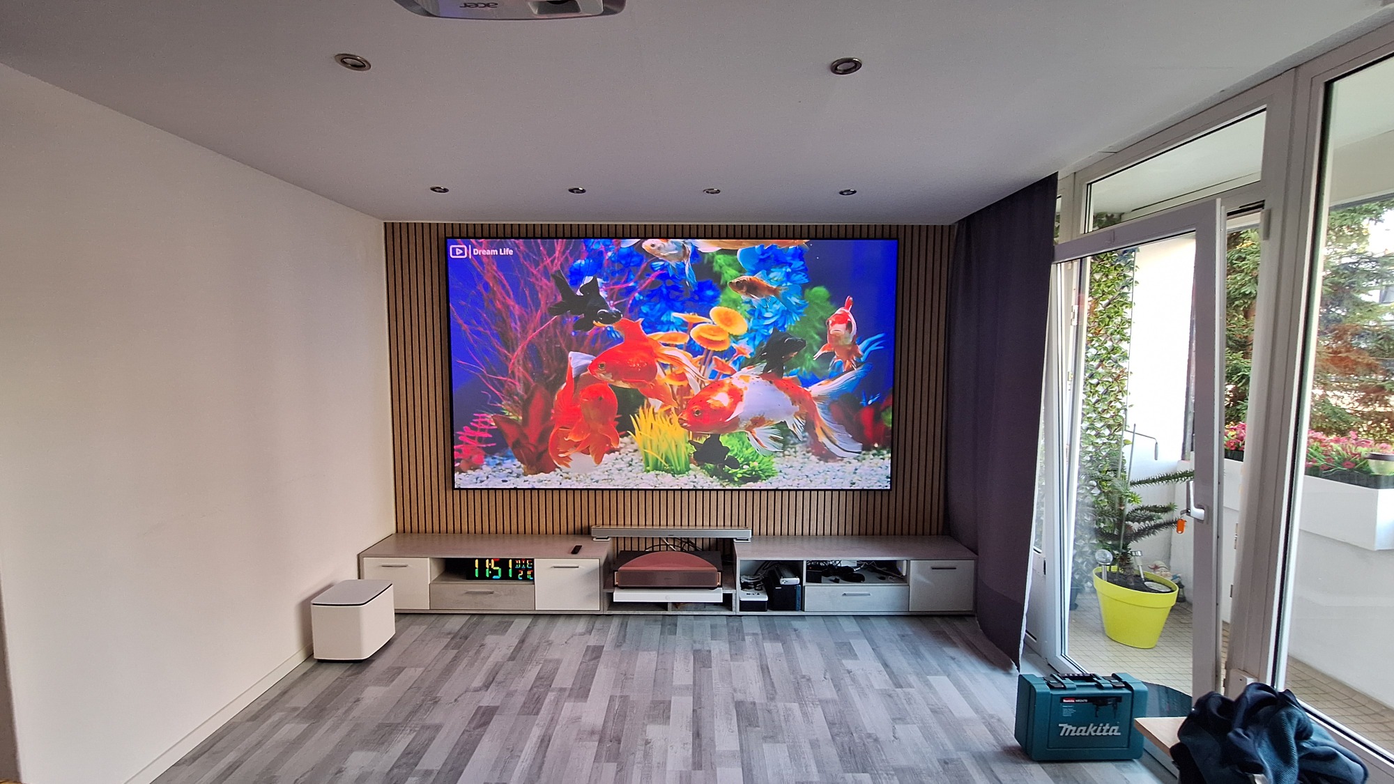 120" Leinwand mit Laser-TV im Wohnzimmer
