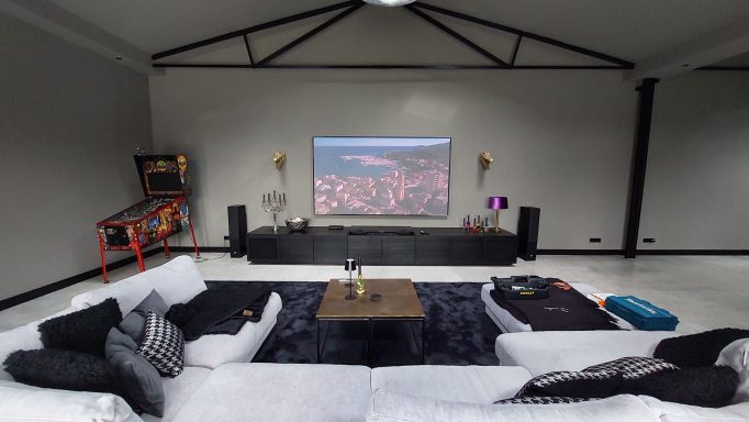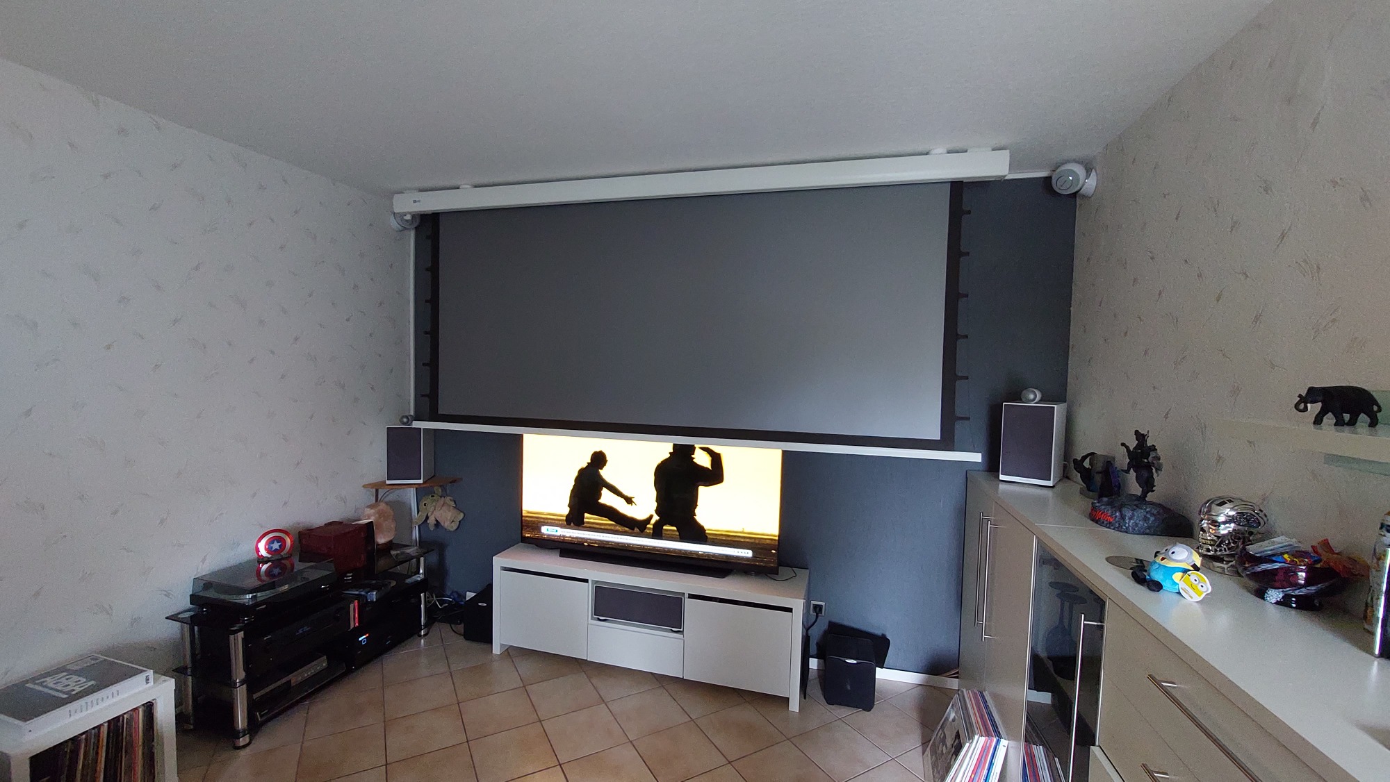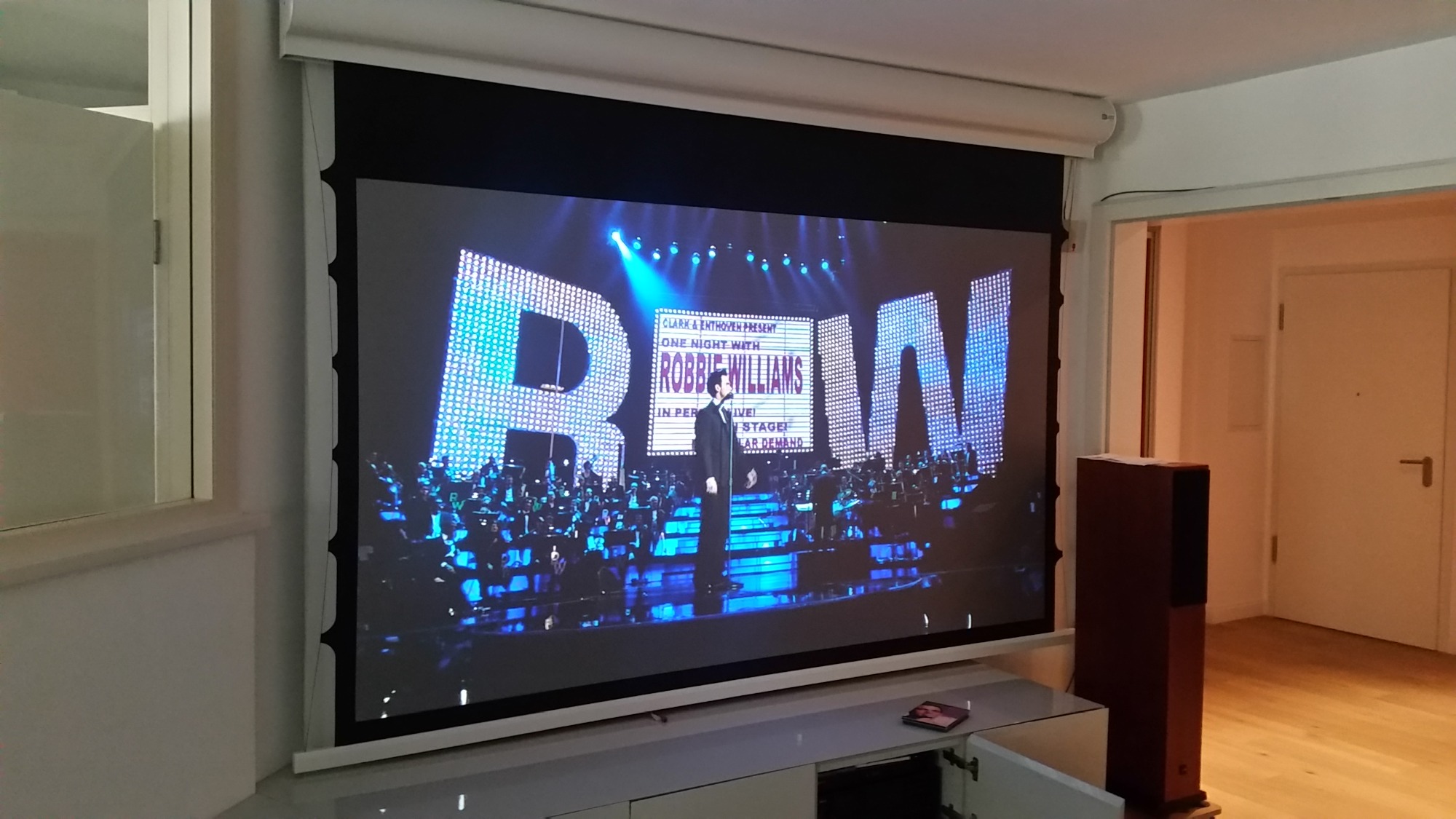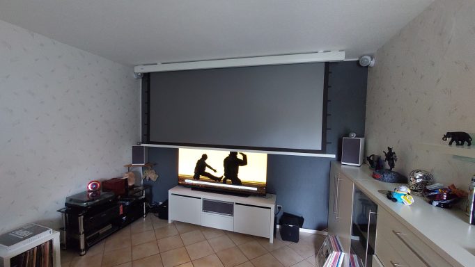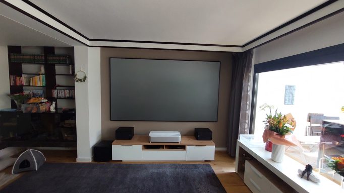 120" Leinwand mit Laser-TV im Wohnzimmer