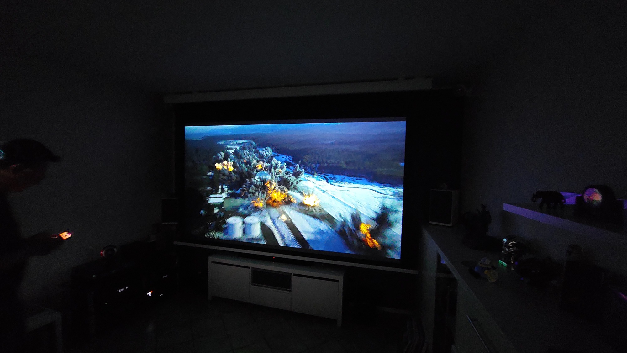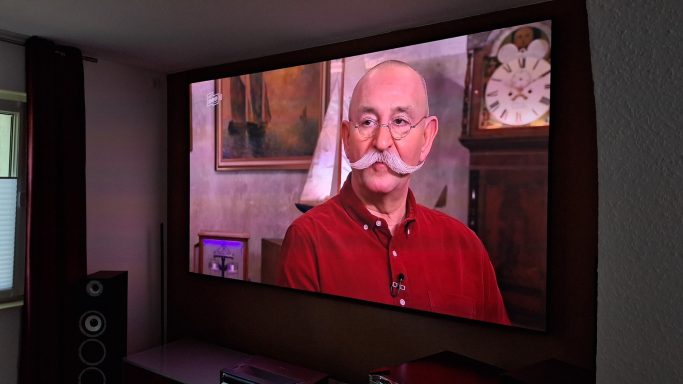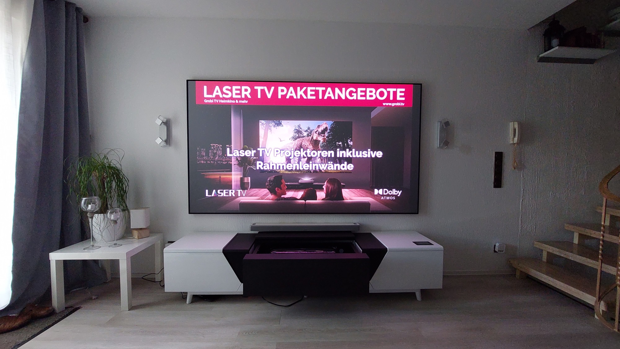 Epson EH-LS800W Laser-TV auf 100" Leinwand. - Absolut Tageslicht tauglich.