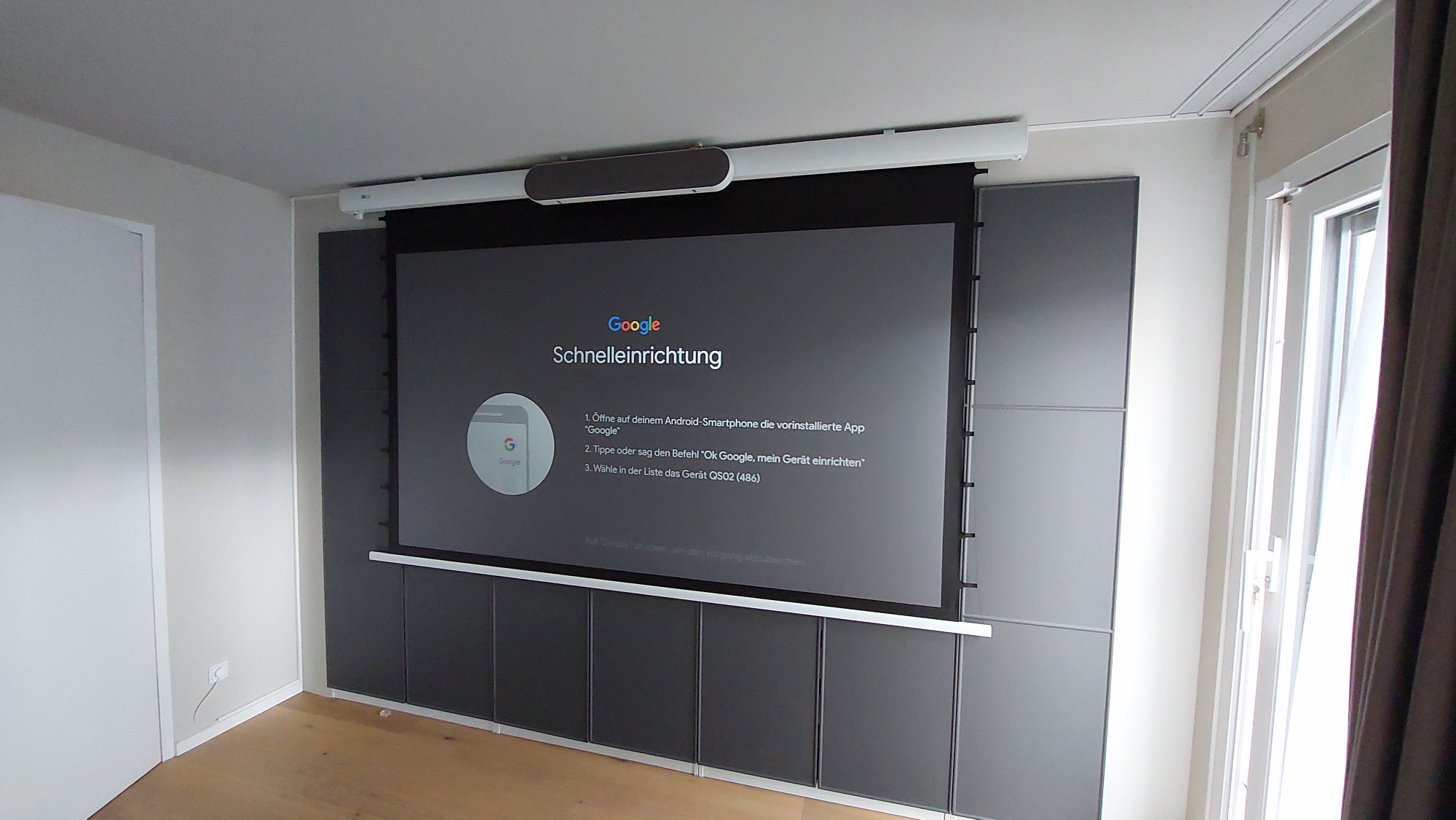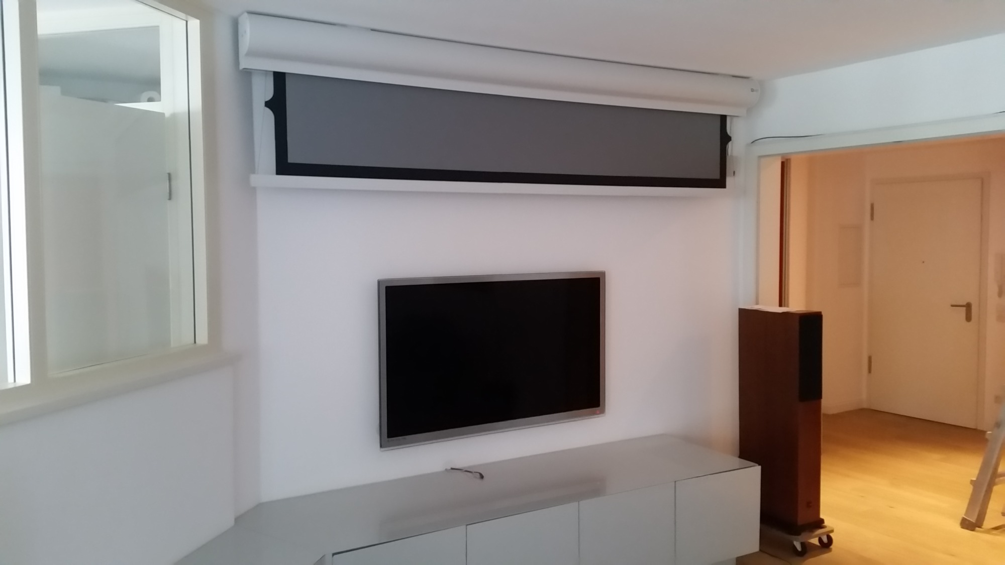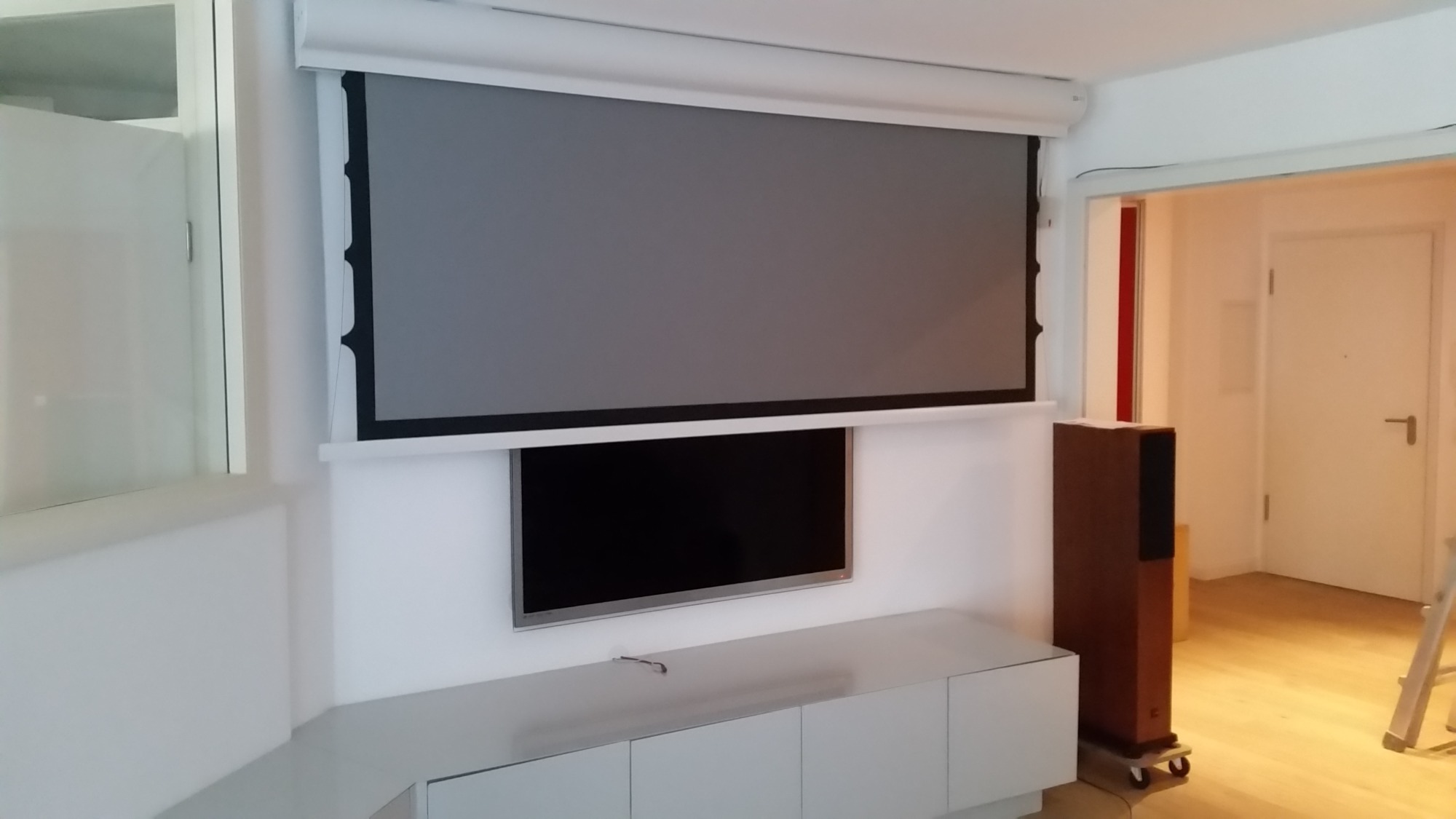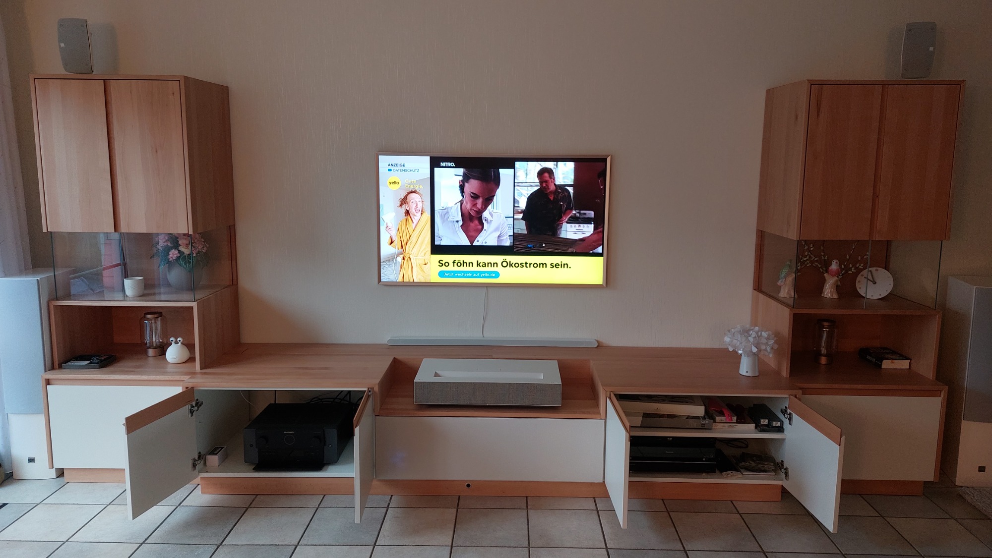 120" Leinwand - Laser-TV fährt automatisch aus dem Sideboard.
