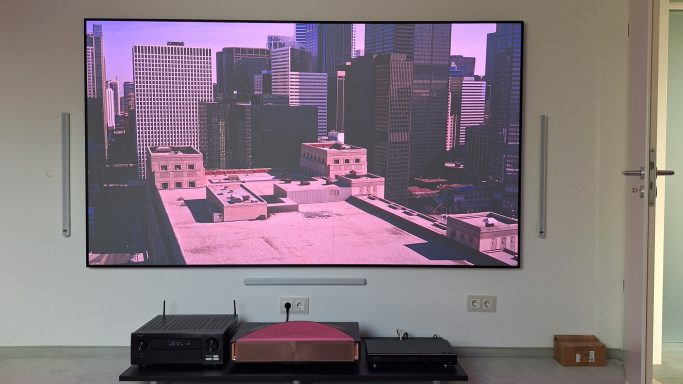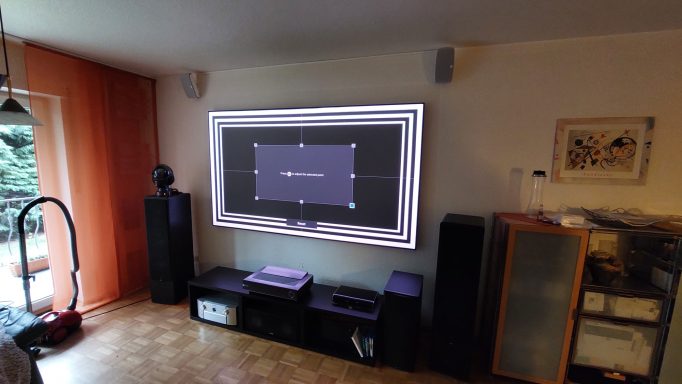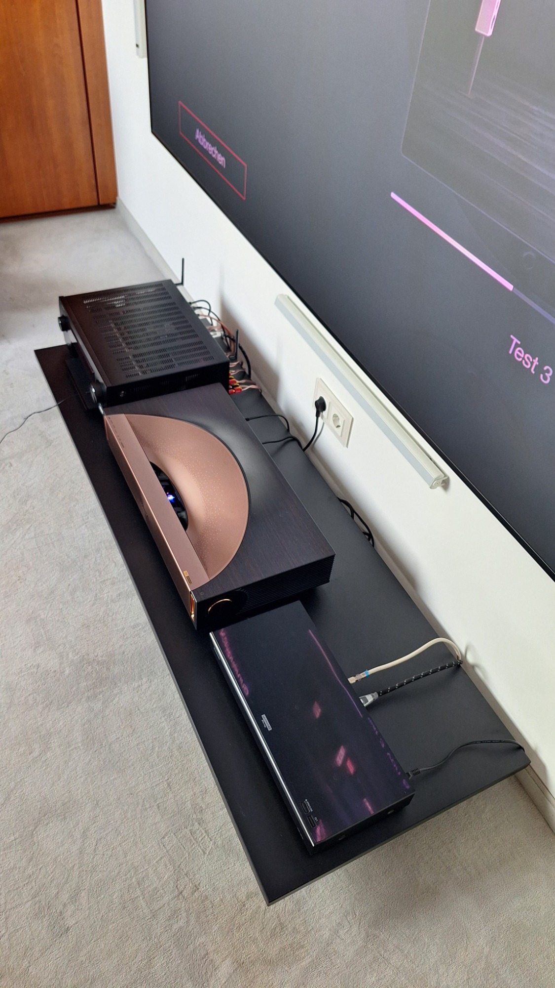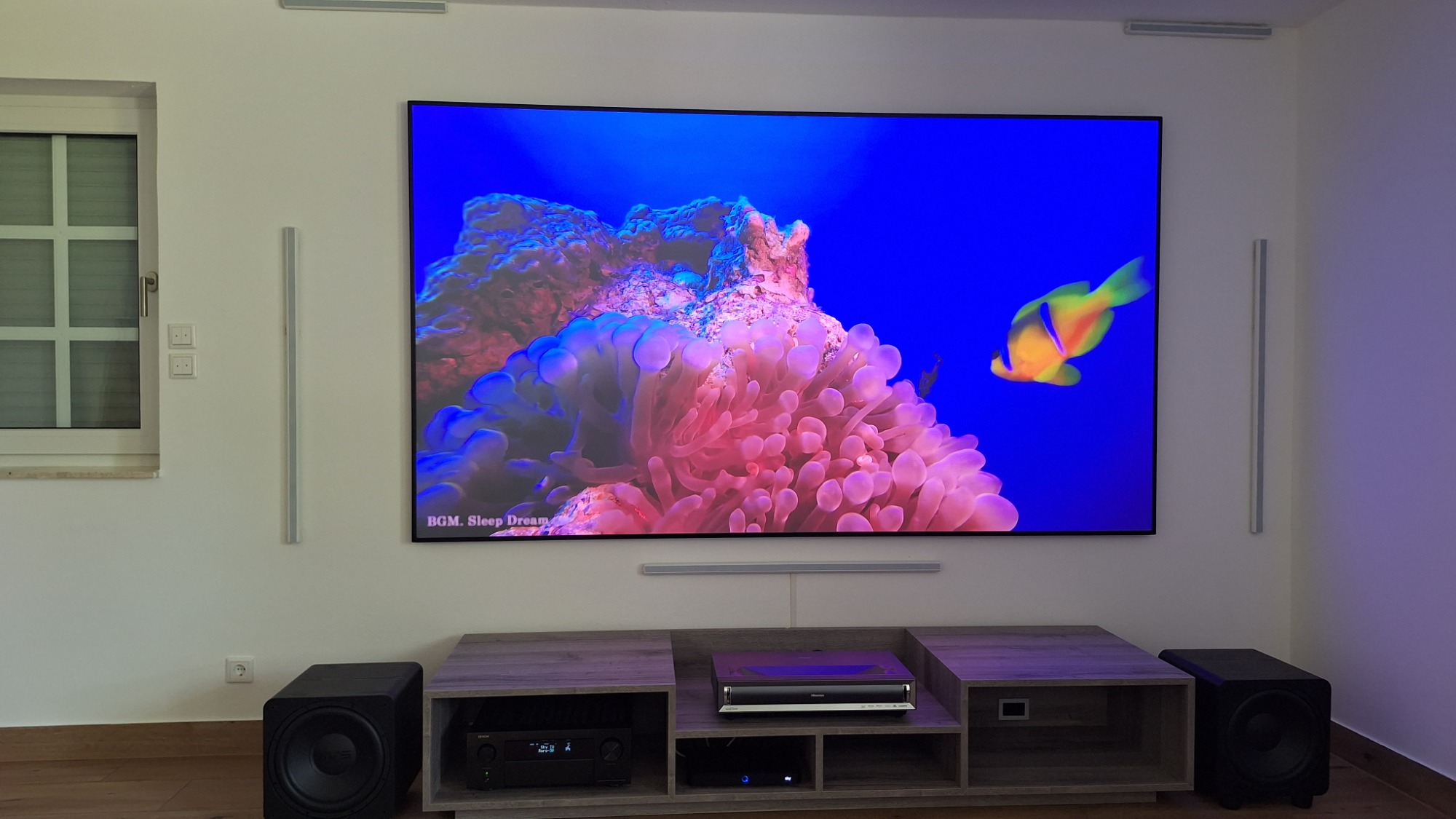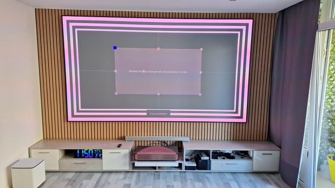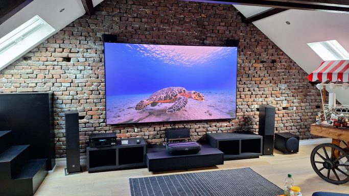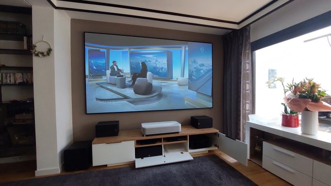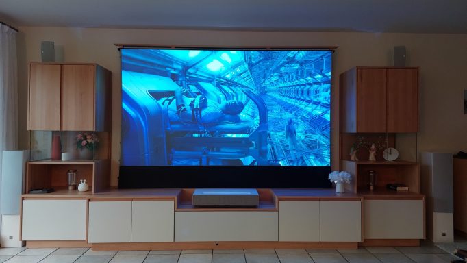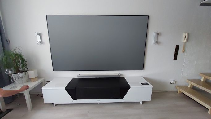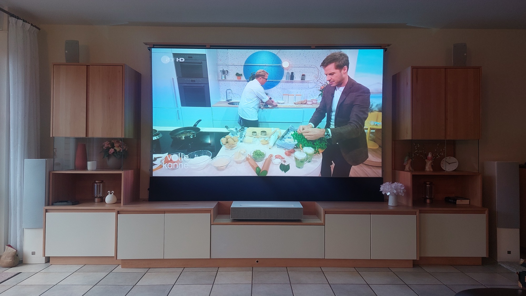 Laser-TV im Schrank auf 120" CLR-Leinwand