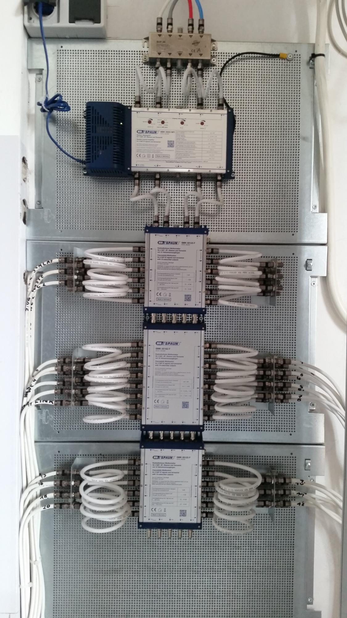 SAT-Anlage für den Empfang von 2 Satelliten für 100 Parteien