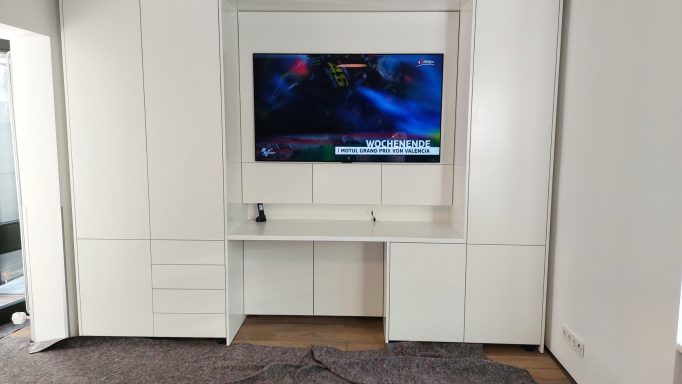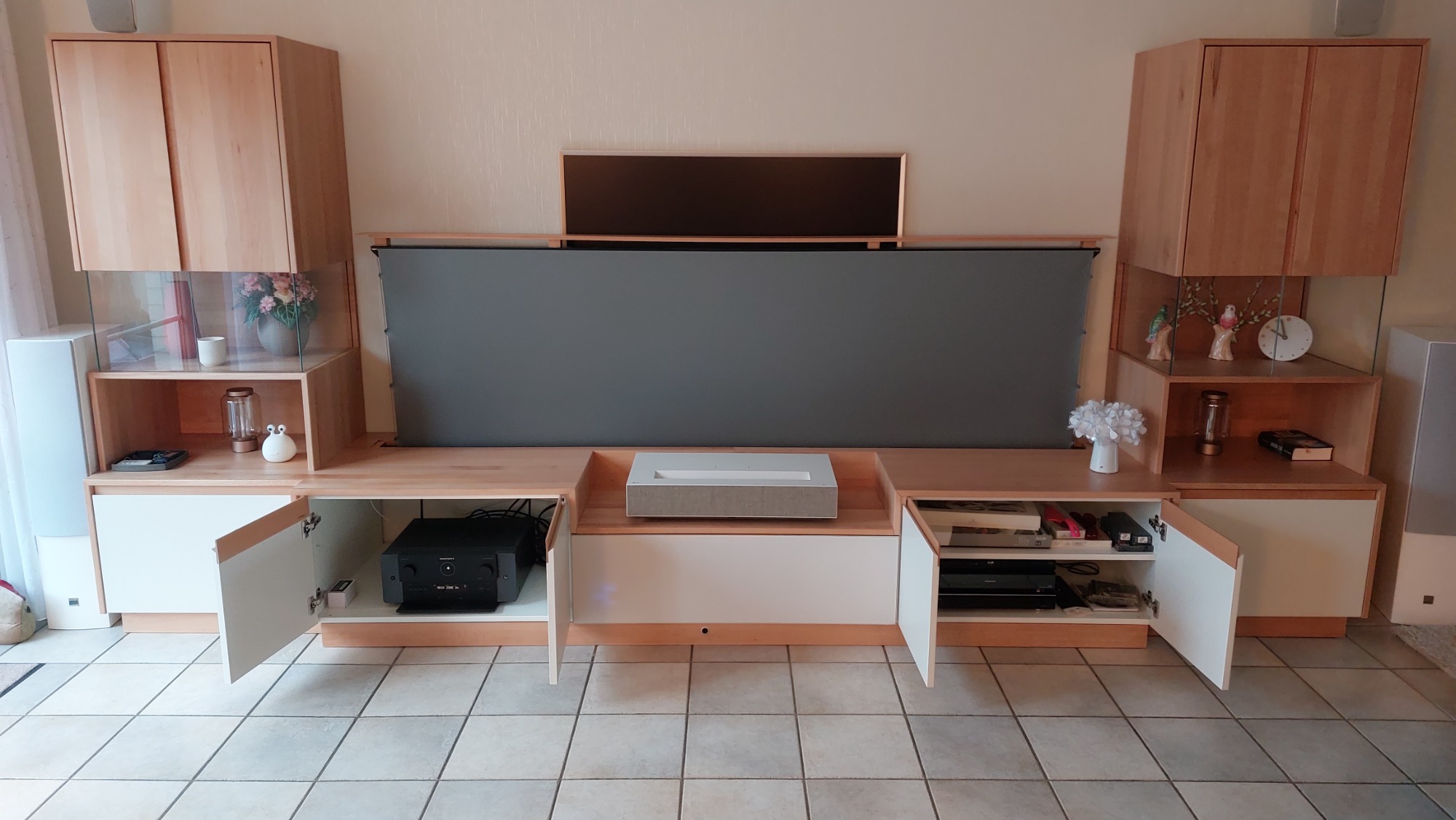Laser-TV im Schrank - vom Schreiner angefertigt