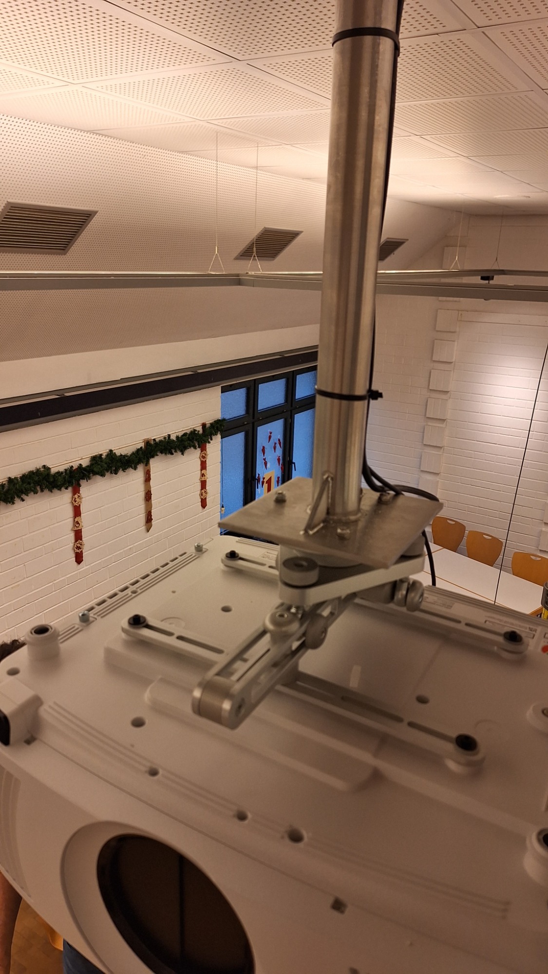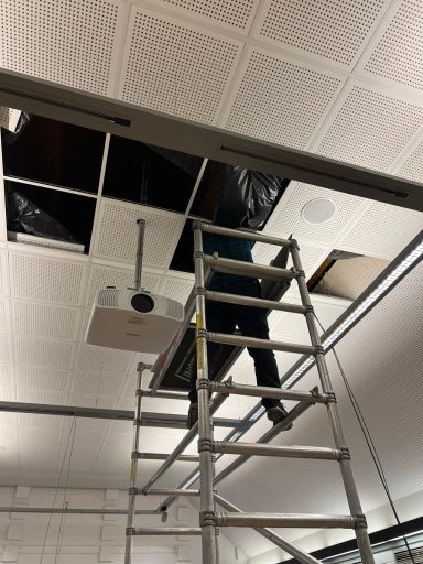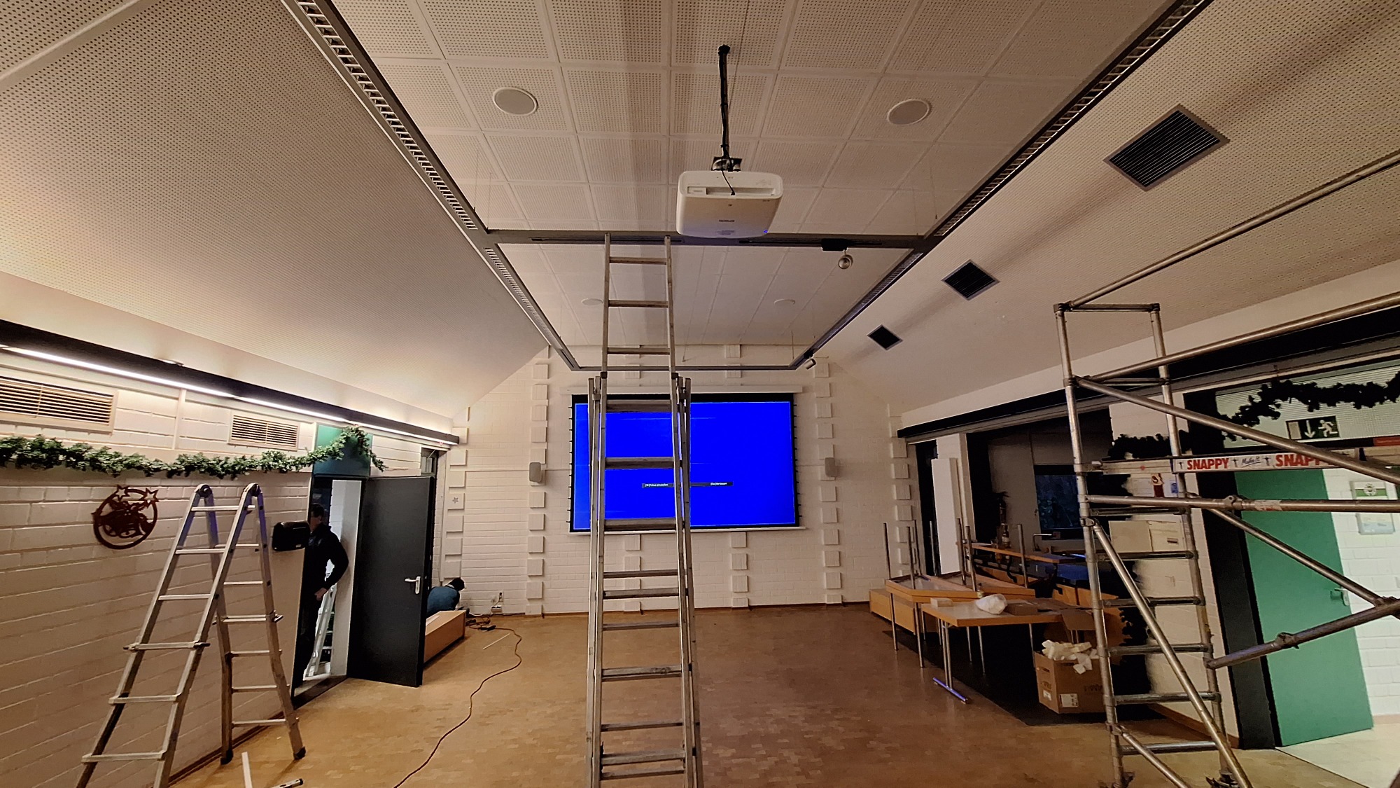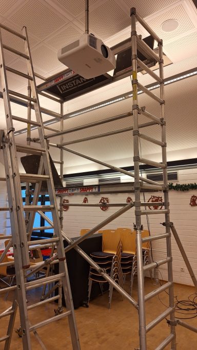 Beamer in 4 Meter Höhe an Spezial-Halter installiert