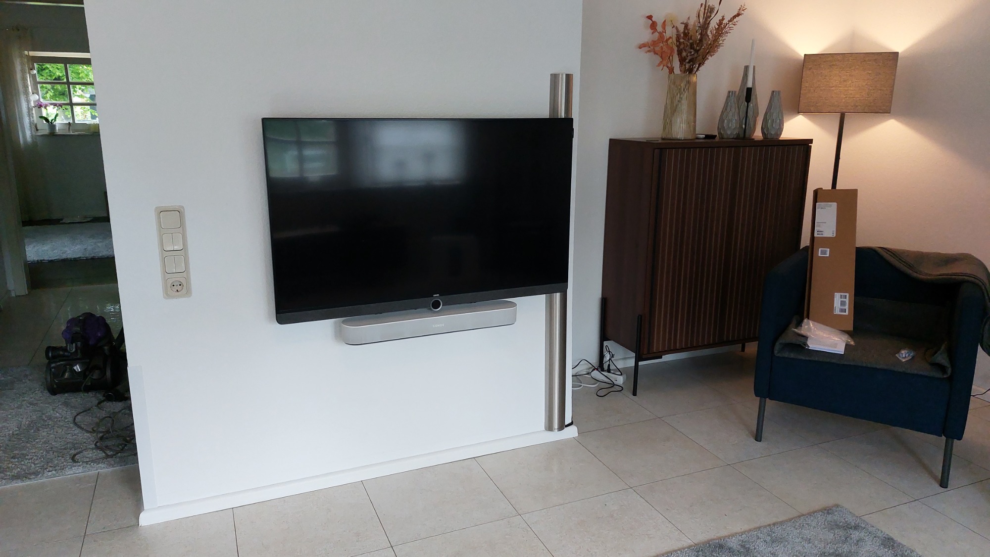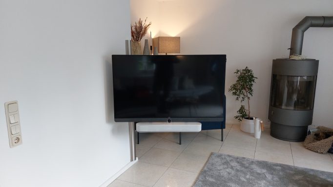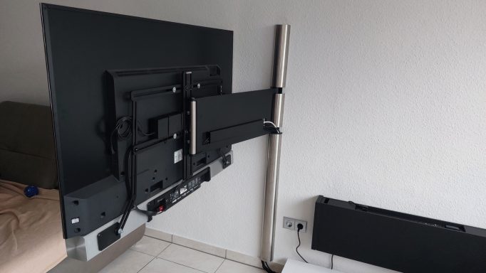 55" Fernseher an schwenkbarer Wissmann Halterung