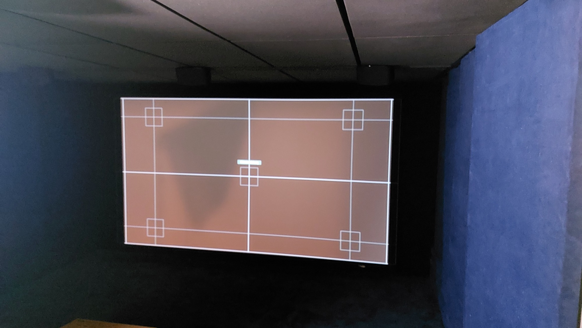 Center-Speaker hinter der 3 Meter breiten schalldurchlässigen Leinwand - der Ton kommt mitten aus dem Bild